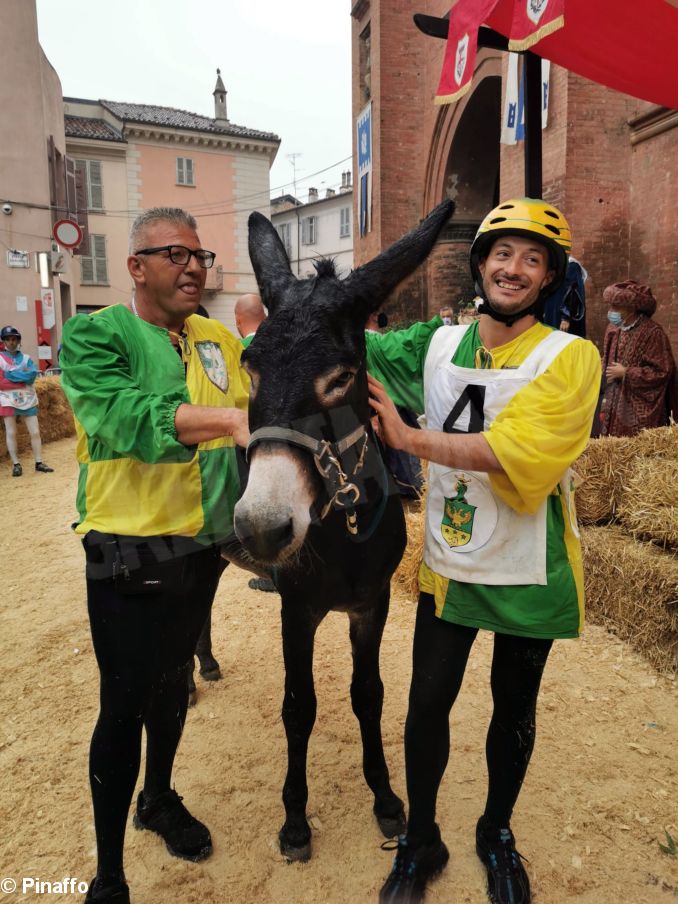 ALBA Finale concitato per il Palio degli asini 2021. Moretta ha tagliato per prima il traguardo della finale ma è servita oltre un ora alla giuria per assegnare la vittoria al borgo oro-verde. Brichett, arrivato secondo, ha protestato per essere stato rallentato dal secondo fantino della Moretta, attardato di un giro. Moretta vince, ma, vista l’intenzionalità del gesto, il secondo fantino della Moretta sarà sospeso dalla prossima edizione del palio.