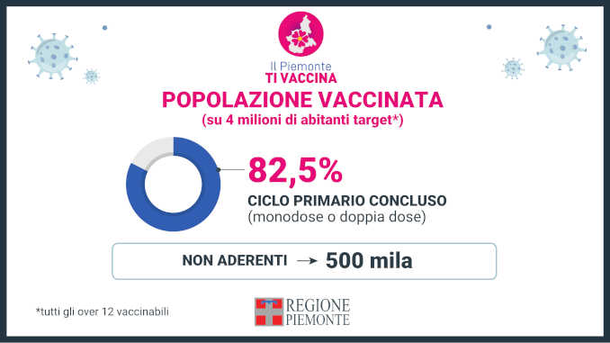 «Se, attraverso questi canali, una persona riceverà la terza dose prima della data di convocazione, il sistema verrà aggiornato in automatico», ha spiegato Cirio. Per chi, a prescindere dall’età, si è già prenotato sul portale regionale e ha già ricevuto un appuntamento, nessun cambiamento all’orizzonte: rimarrà valida la data ricevuta in sede di prenotazione, a prescindere dall’entrata in vigore del nuovo meccanismo. Per chi ha raggiunto i 5 mesi dalla seconda dose e non si è ancora prenotato, gli arriverà il messaggio con la data per la terza dose, secondo il nuovo sistema. In totale, sono 3milioni di piemontesi che dovranno ricevere la terza dose: di questi, 1,4 milioni hanno già il requisito temporale per riceverla e oltre 570mila l’hanno già ricevuta ad oggi. Riguardo alla copertura vaccinale, l’82,5 per cento dei piemontesi con più di 12 anni ha completato il ciclo vaccinale. Rimangono ancora 500mila persone che hanno scelto di non aderire alla campagna, “una cifra per fortuna sempre più bassa», hanno commentato dalla Regione.