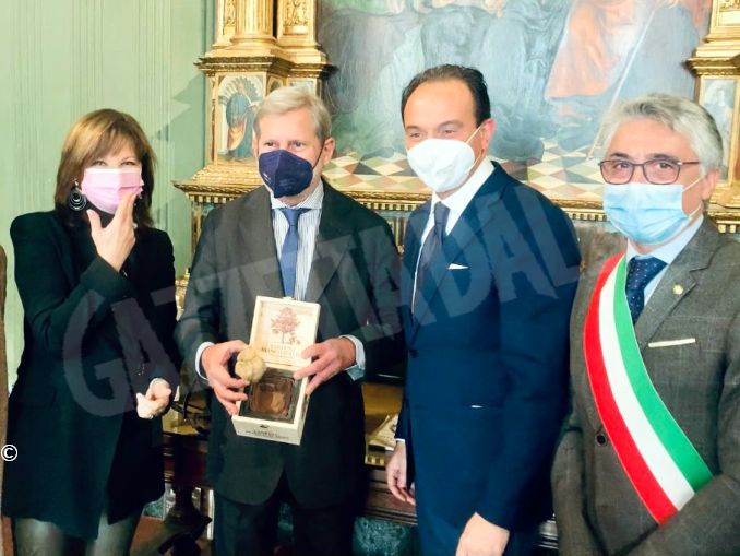 Il sindaco Carlo Bo sottolinea: «È stato un onore poter accogliere in Comune ad Alba il commissario europeo per la programmazione finanziaria e il bilancio, Johannes Hahn, con il presidente della Regione Alberto Cirio. Il Commissario – che ringrazio per la visita – ha scelto le nostre colline Unesco per una breve vacanza, che si è rilevata un’occasione importante di confronto sulle risorse del Pnrr, cruciali anche per il futuro sviluppo del nostro territorio».