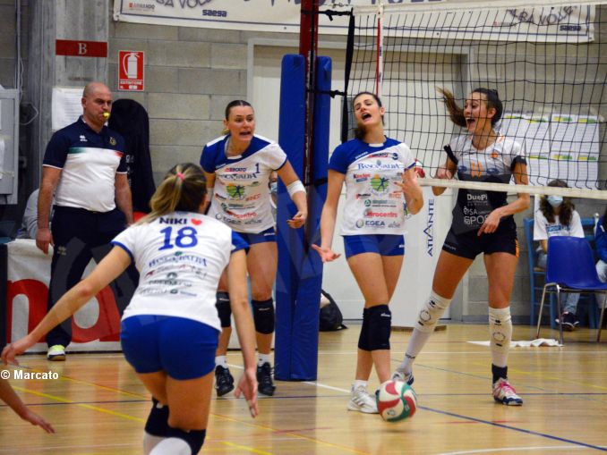 Nel primo set il sestetto langarolo cede alle liguri per 17 a 25, in soli 22 minuti. Va meglio nel secondo parziale che le langhette battagliano con le ospiti, passando avanti dopo un miracolo difensivo di capitan Bonifazi che vale il 7-6 momentaneo ma non la lunghezza che sfugge 21-25. Nel terzo set si rivedono scampoli di bel gioco, il muro riprende a funzionare e un’implacabile Parise trascina la squadra ai vantaggi: finisce 25 a 27 per Serteco.