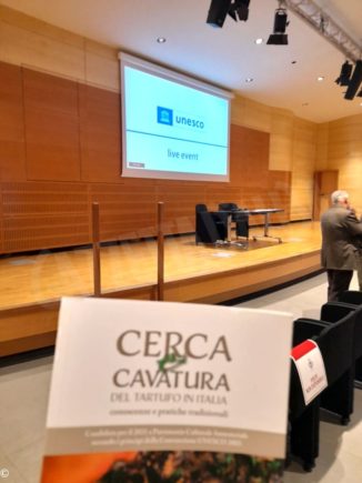Il presidente del Centro nazionale studi tartufo, Antonio Degiacomi, a pochi minuti dall’inizio dell’evento spiega che la commissione Unesco in questi giorni deve valutare circa 40-50 pratiche candidate a diventare patrimonio immateriale dell’umanità Unesco. Si tratta di saperi specifici ed eterogenei, o anche elementi folkloristici molto particolari come la modalità di costruzione di una piroga, la tradizione di Pulcinella, antichi giacimenti fossili. Degiacomi, pur preferendo non rilasciare dichiarazioni prima del verdetto definitivo riguardo alla cerca e alla cavatura del tartufo, spiega che la decisione dell’assemblea rappresenta soltanto l’esito di un percorso di sensibilizzazione durato anni – e lascia dunque trapelare la fiducia in un responso positivo.