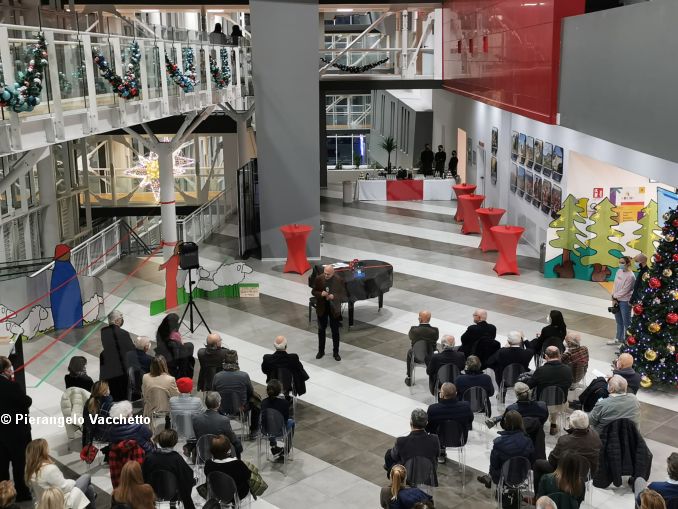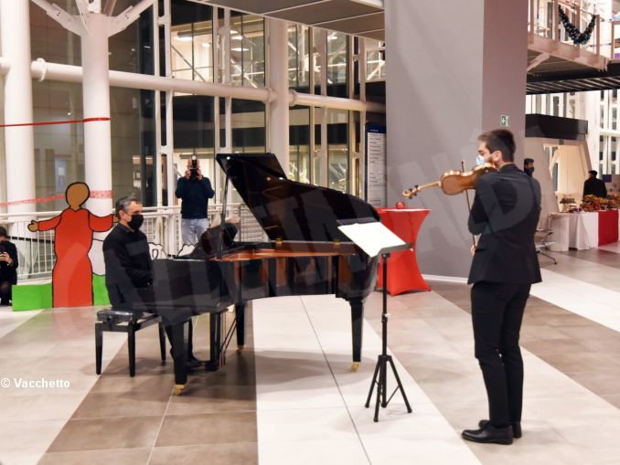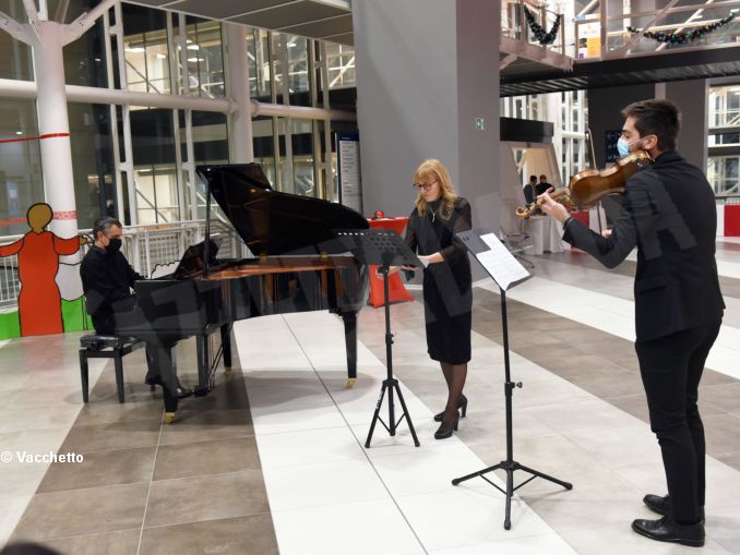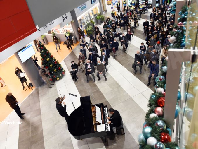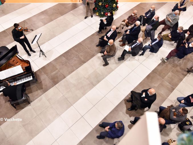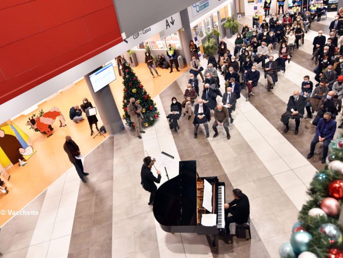 La cerimonia di accensione delle luci, organizzata durante la serata di sabato 4 dicembre, è stata anche l’occasione per presentare e inaugurare ufficialmente il progetto Donatori di musica, la nuova iniziativa della fondazione Ospedale Alba Bra. Come spiega il direttore Luciano Scalise, «tutto è cominciato con la consegna del premio Gratitudine al musicista Ezio Bosso, la sera del 13 dicembre 2019 al Politeama di Bra, quando si esibirono sul palco alcuni dipendenti dell’Asl Cn2, che donarono la loro musica come omaggio al maestro». Da qui l’idea di portare la musica in ospedale: «Attraverso la fondazione, il presidente Bruno Ceretto ha donato al Ferrero il pianoforte a coda posizionato nell’androne nel terzo piano, che sarà a disposizione di chiunque vorrà donare la sua musica: pazienti, dipendenti, famigliari, ma ci piacerebbe anche accogliere i ragazzi degli istituti musicali del nostro territorio. E in futuro ci piacerebbe veder nascere l’orchestra dell’ospedale Ferrero: la musica può avere un ruolo centrale nel processo di umanizzazione di una struttura medica, per fare dell’ospedale un luogo sempre più accogliente, il grande obiettivo per cui lavora la nostra fondazione».