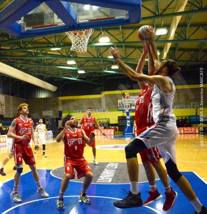 La Computer gross prosegue il suo buon momento e si porta sul +8 (18-26), con la San Bernardo Abet a districarsi tra i problemi di falli (3 di Castellino a metà frazione). Tarditi, Danna e Perez ricuciono (24-26), tuttavia Lrb non riesce a limitare nel pitturato lo strapotere fisico di De Leone, bravo a subire falli e a riaprire il campo per le triple che di nuovo staccano i viaggianti: 28-36 e time-out Jacomuzzi.