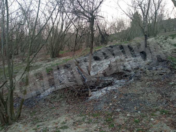L'area intaccata dalle fiamme ripresa il giorno successivo.