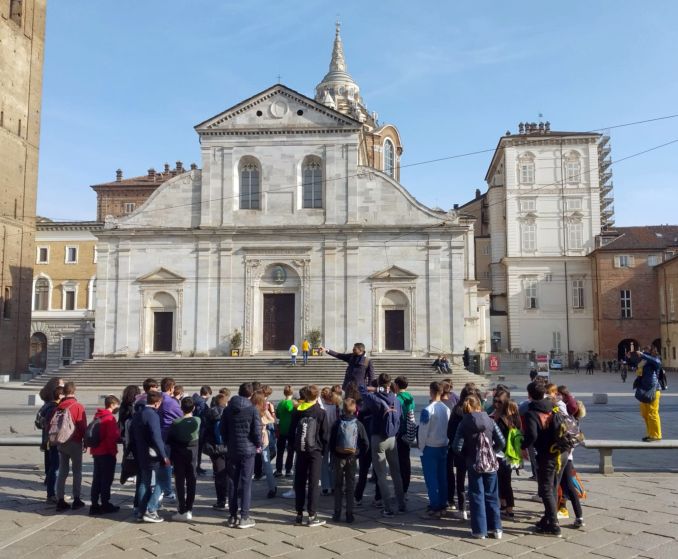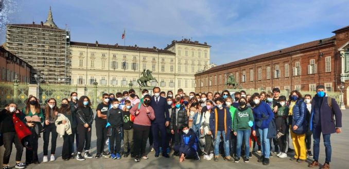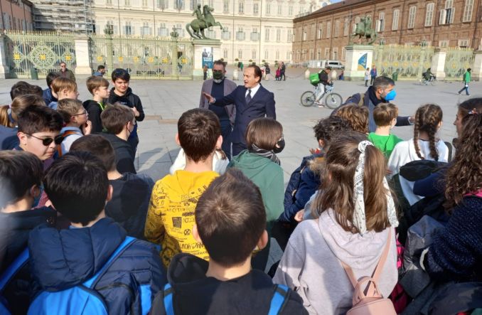 Dopo aver visitato la real chiesa di San Lorenzo i partecipanti all’uscita didattica hanno potuto scambiare alcune battute con il presidente della Regione, casualmente incrociato in piazza Castello. Cirio ha interrogato i ragazzi sui principali palazzi presenti nella piazza e ha spiegato loro che palazzo Madama ospitò il primo parlamento dell’Italia unita.