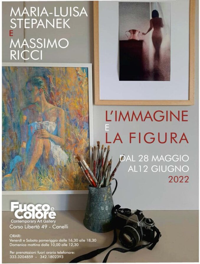 LA MOSTRA Pittura e fotografia si incontrano nella doppia mostra personale L’immagine e la figura di Maria Luisa Stepanek e Massimo Ricci che apre sabato pomeriggio, 28 maggio, alla galleria Fuoco e colore Contemporary di Canelli. Massimo Ricci è un artista di Nizza già noto mentre Maria Luisa è una fotografa di origine canadesi e italiane: una coppia di artisti che sono amici nella vita e che con questa mostra inaugurano anche un sodalizio artistico e professionale.  L’esposizione sarà aperta fino al 12 giugno con i seguenti orari: venerdì e sabato dalle 16.30 alle 19 e domenica dalle 10 alle 12.