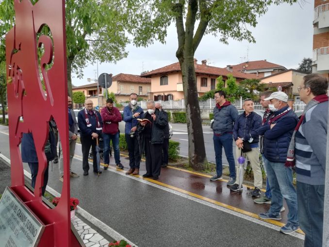 BRA Dopo la Messa al santuario della Madonna dei fiori, dove sono stati ricordati don Aldo Rabino, storico cappellano del Toro e i caduti della squadra perita a Superga, don Sebastiano Viotto ha impartito una benedizione al monumento del Grande Torino situato nell’omonima area vicino al santuario.