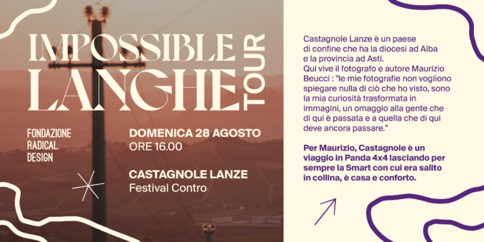 LIBRI Prosegue il tour letterario di presentazione del volume Impossible Langhe, nato dallo sforzo congiunto di Pietro Giovannini (scrittore), Maurizio Beucci (fotografo), Charley Vezza della fondazione Radical Design e Tommaso Delmastro (curatore del progetto grafico). Un libro che viene definito un romanzo turistico e che ha l’intento di mostrare quanto siano speciali le Langhe. Domenica 28 agosto sarà presentato al festival Contro di Castagnole Lanze alle 16.