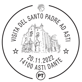 Per l’occasione, dalle 8.30 alle 14.30, Poste italiane allestirà uno spazio filatelico temporaneo, dove sarà possibile ottenere l’annullo dedicato all’iniziativa sulle speciali cartoline stampate. L’annullo, nel formato tondo, riproduce la cattedrale di Asti con la scritta “Visita del Santo Padre ad Asti”. Nello spazio filatelico si potranno acquistare anche le più recenti emissioni di carte valori, francobolli a tema oltre ai tradizionali prodotti come folder, cartoline e tessere. Il timbro figurato dell’annullo sarà disponibile nello sportello filatelico di Corso Dante 55, negli orari di apertura al pubblico, da lunedì 21 novembre e per i sessanta giorni successivi all’evento, per poi essere depositato nel Museo storico della comunicazione di Roma entrando a far parte della collezione storico postale.