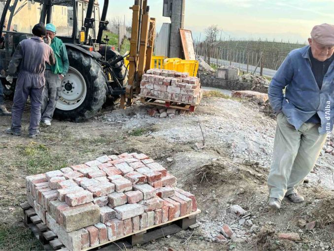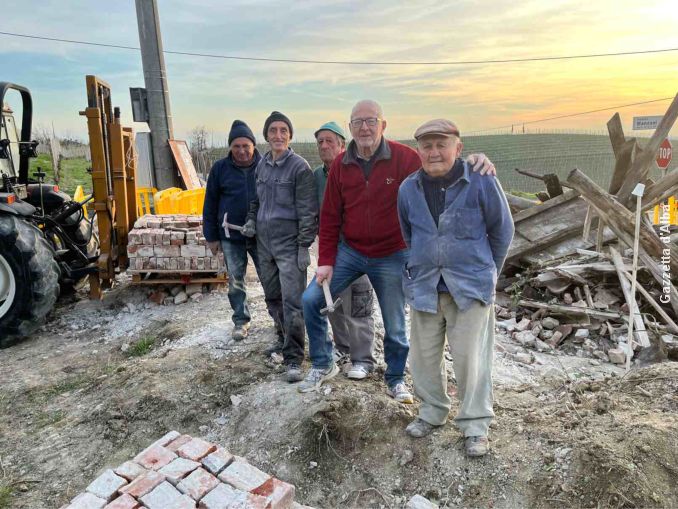 Tutti i frazionisti disponibili, si sono dati appuntamento sul “bricco” (come è chiamato il luogo dai residenti) per abbattere la piccola costruzione, orami pericolante e recuperarne gli antichi mattoni con i quali era stata realizzata. Aggiungono i residenti: «Grazie alla collaborazione di tutti, abbiamo recuperato ben mille mattoni antichi, ancora perfetti, che serviranno per fare il basamento sul quale l’impresa che abbiamo contattato (indicata anche dalla Soprintendenza) ricompatterà il pilone».