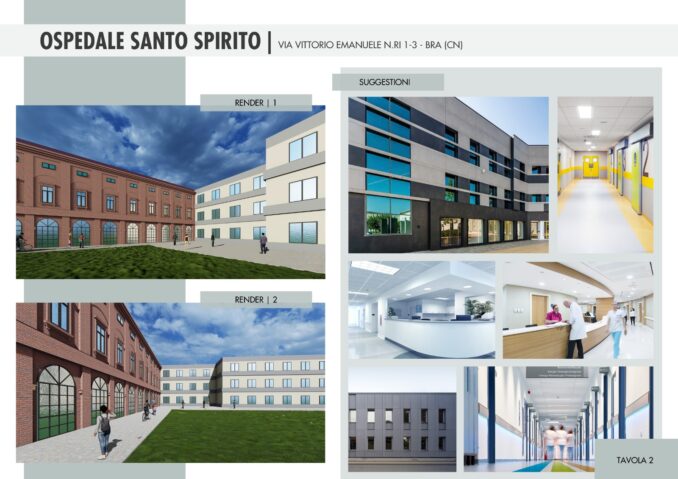 Riguardo all’ex ospedale di Bra, sono previsti il recupero del fabbricato monumentale per Hospice, servizi amministrativi, socio-assistenziali, formazione e Dipartimento di prevenzione, oltre al recupero e alla riqualificazione di un fabbricato più recente da dedicare a casa di comunità, ospedale di comunità, centrale operativa territoriale e attività clinico-assistenziali tra cui medici di medicina generale, continuità assistenziale, sede Distretto e ambulatori specialistici.