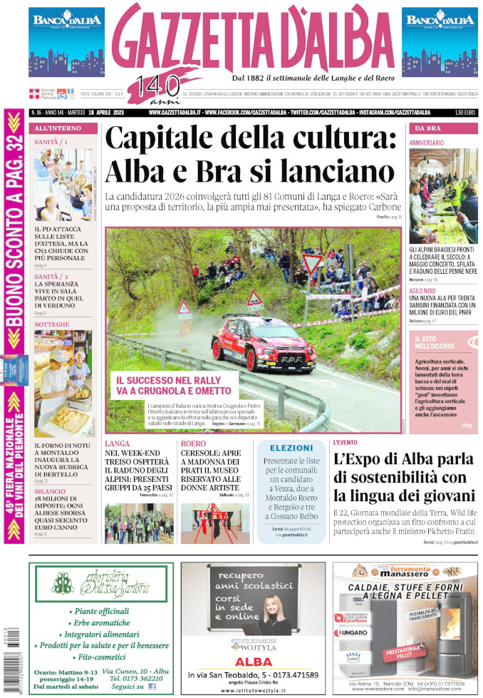ALBA In anteprima la copertina del numero 165 di Gazzetta d’Alba che sarà disponibile in edicola e in formato digitale da martedì 18 aprile 2023. Il numero comprende il primo inserto speciale su Vinum 2023.