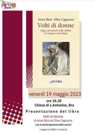 BRA Si intitola “Volti di donne – Figure femminili nella Bibbia tra esegesi e psicologia” il libro di Elisa Cagnasso e Anna Bissi che sarà presentato venerdì 19 maggio, con la partecipazione delle autrici nella chiesa di S.Antonino a Bra. L’appuntamento è per le 18.30.