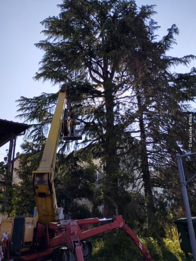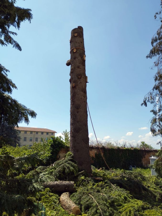 Abbattuto il cedro pericolante nel cortile del museo Craveri di Bra