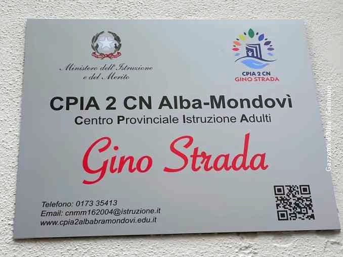 ALBA È stata scoperta questa mattina, mercoledì 17 maggio, la targa che riporta la nuova denominazione del Cpia di Alba, dedicato a Gino Strada, fondatore di Emergency, che si trova in corso Michele Coppino.