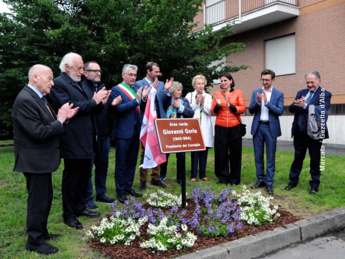 ALBA «Giovanni Goria è stato tra i più giovani Presidenti del Consiglio, nominato a soli 44 anni, ed è purtroppo scomparso a 50 anni, troppo presto. Un politico lungimirante che si è battuto per tematiche ancora attuali, la riduzione del debito pubblico, l’ammodernamento delle infrastrutture, la riduzione dell’assistenzialismo dello Stato, e che ha sempre cercato di investire sui giovani, anche svecchiando la politica. Lo ricordiamo tutti per il risultato elettorale straordinario in Europa, con oltre 640 mila preferenze e, qui ad Alba, per l’importante riforma delle Doc nel 1992», con queste parole il sindaco Carlo Bo ha ricordato il politico astigiano nel corso della cerimonia con cui la Città di Alba ha dedicato i giardini in corso Europa, tra via Padre Girotti e via San Pio V, di fronte alla scuola primaria Montessori e a fianco all’area dove si svolge il mercato rionale del venerdì.