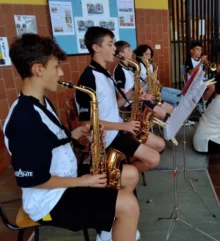 Dopo la celebrazione, i 35 componenti dell’Orchestra scolastica supportati dai vari docenti di strumenti, si sono esibiti con impegno e non poca emozione con tre brani molto coinvolgenti. I momenti musicali sono stati intervallati dai saluti di addio dei rappresentanti degli alunni di terza media, che hanno ringraziato i singoli docenti con un pensiero appropriato e un piccolo omaggio.