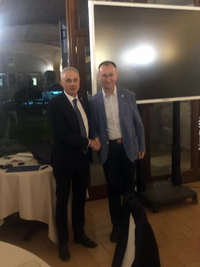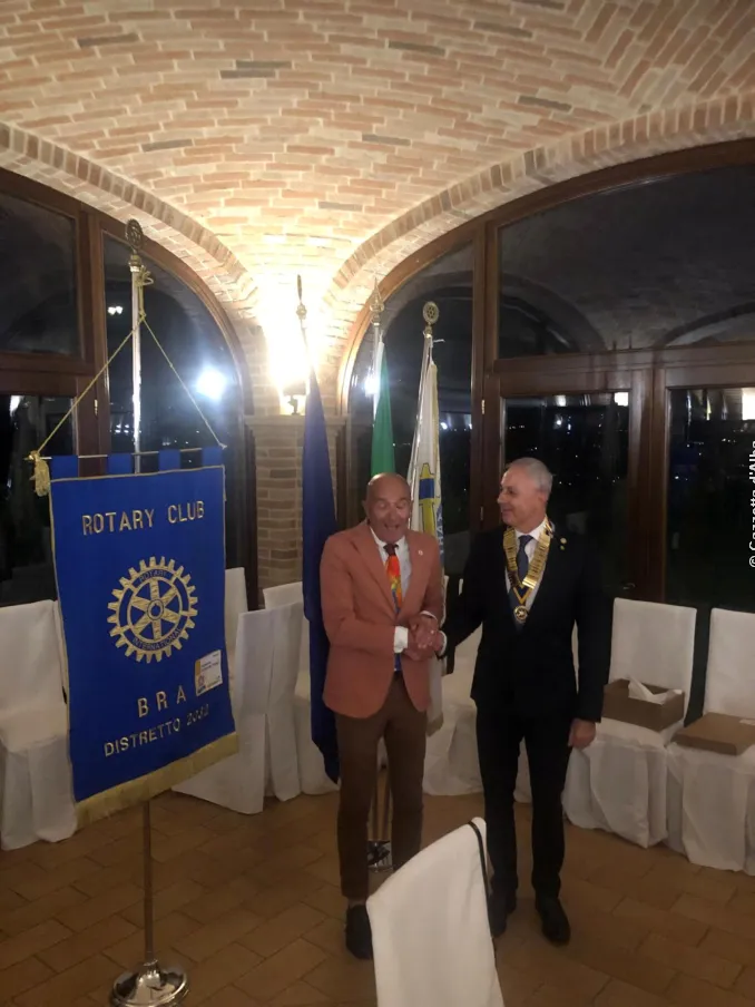 BRA Giovedì 22 giugno, una grande e importante serata per i soci del Rotary club Bra al ristorante I poderi di tota Virginia, in un paesaggio spettacolare e tranquillo ha fatto da cornice al passaggio di consegne tra il presidente uscente, Giuseppe Sordo e il nuovo presidente Vincenzo Peisino, anche se giuridicamente il mandato scadrà il 30 giugno prossimo.