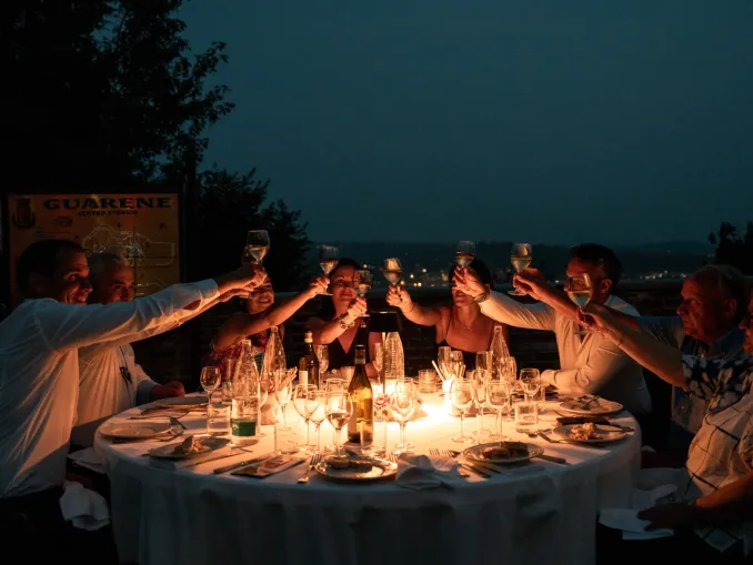 Quindi la cena-evento “Istanti: l’arte va in s-cena” in piazza Roma, organizzata dalla Pro loco di Guarene, che ha visto la partecipazione di quasi 200 persone che hanno avuto modo di apprezzare un ricco menu accompagnato dai vini dei produttori locali, impreziosito dall’offerta culturale di quattro spettacoli, a ripercorrere un anno di eventi a Guarene, presentati dall’attora Paolo Tibaldi, autentico mattatore della serata: il pianista David Irimescu per Roero cultural events, il chitarrista Filippo Cosentino con un’anteprima di Roero music fest, il flash mob a cura della Biblioteca di Guarene con “Le parole siamo noi”, proseguendo con il musical “Big Bang Art!”, nell’ambito del Progetto Snodi, per chiudere con il dj-set della deejay Impa.
