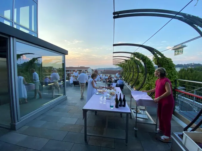 Dopo la visita guidata alla Spa dell’albergo, una ventina di soci hanno preso parte all’aperitivo, godendo una bella visuale sulla città e cercando di catturare un po’ di fresco.