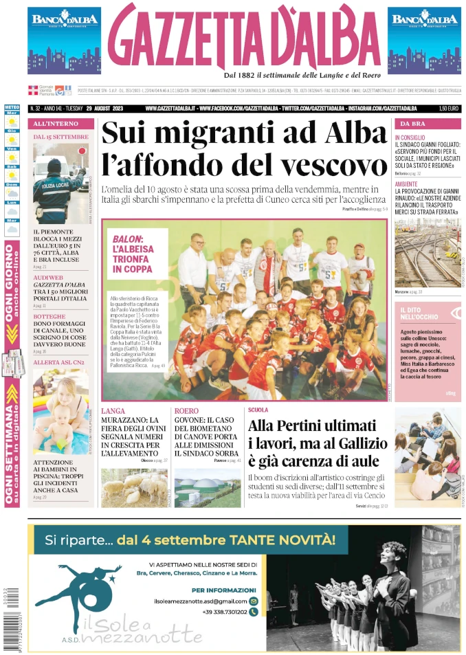 ALBA In anteprima la copertina del numero 32 di Gazzetta d’Alba che sarà disponibile in edicola e in formato digitale da martedì 29 agosto 2023. Il giornale torna in edicola dopo la pausa estiva con un numero da non perdere!