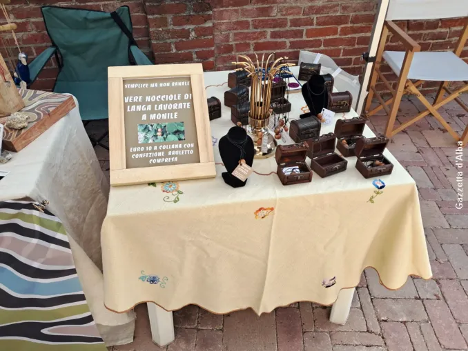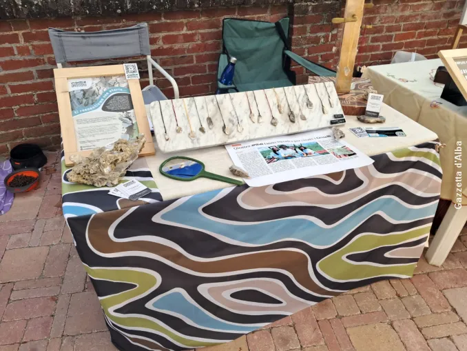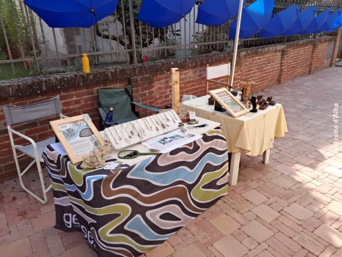 Accompagnati dalla musica del duo Cordetese per tutta la giornata sono stati presentati e venduti i gesselli, monili realizzati a mano da Stefania Lora, Lorenzo Merlo, Luisa Sacco e Aurora Spagnoli con i gessi di Langhe e Roero.