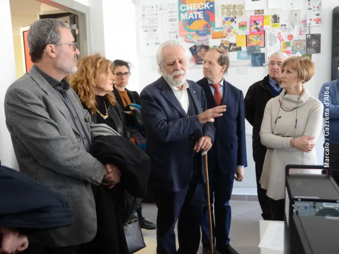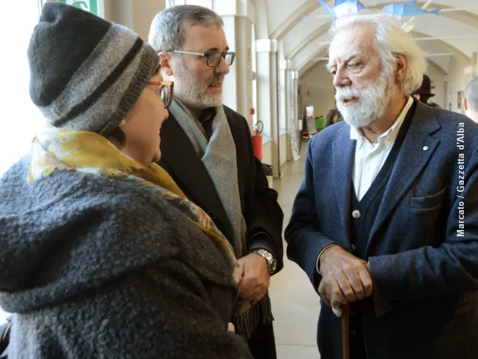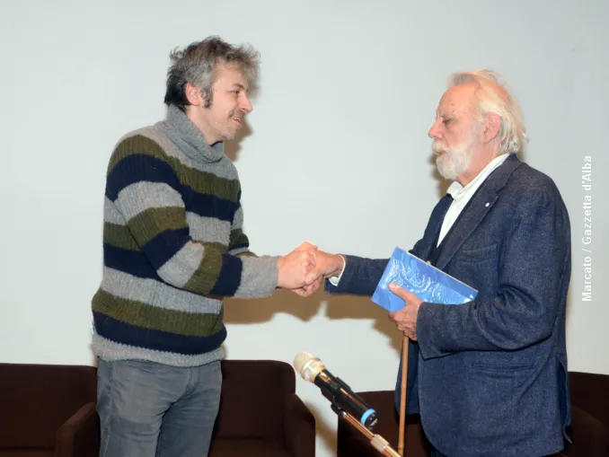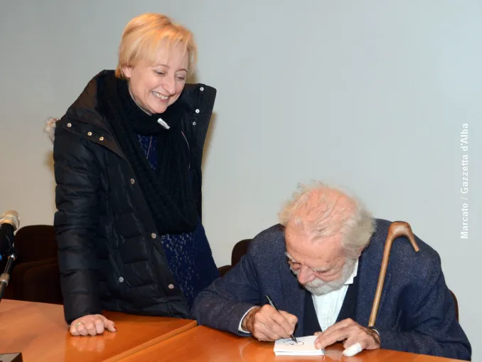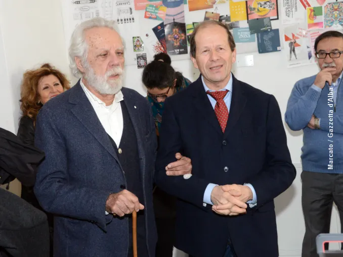 Per ricordare il grande artista riprendiamo gli articoli pubblicati da Gazzetta d’Alba nel corso della sua visita in città per presentare il nostro libro Dito nell’occhio.