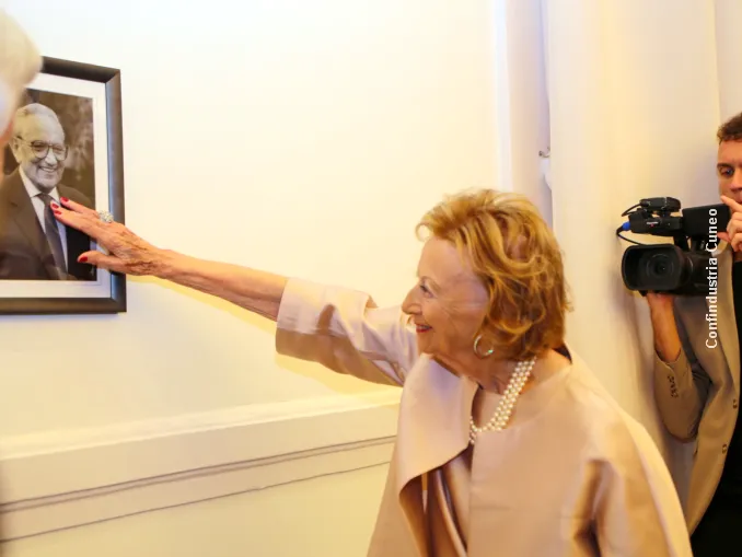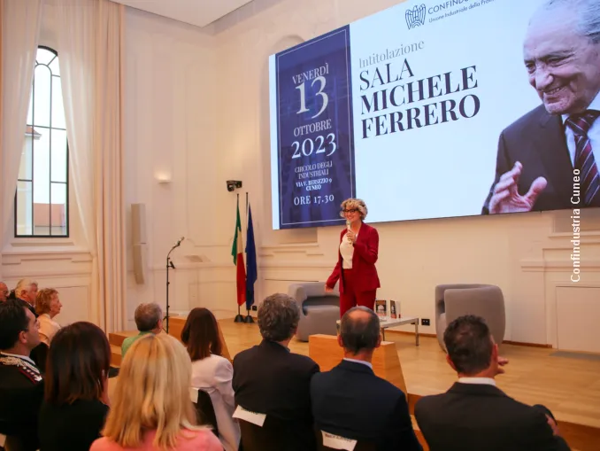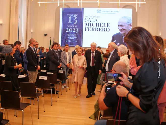 CUNEO È stata intitolata a Michele Ferrero la sala più prestigiosa della sede di Confindustria di Cuneo, in via Bersezio 9. La cerimonia è avvenuta venerdì 13 ottobre alla presenza della vedova, Franca Maria Fissolo.
