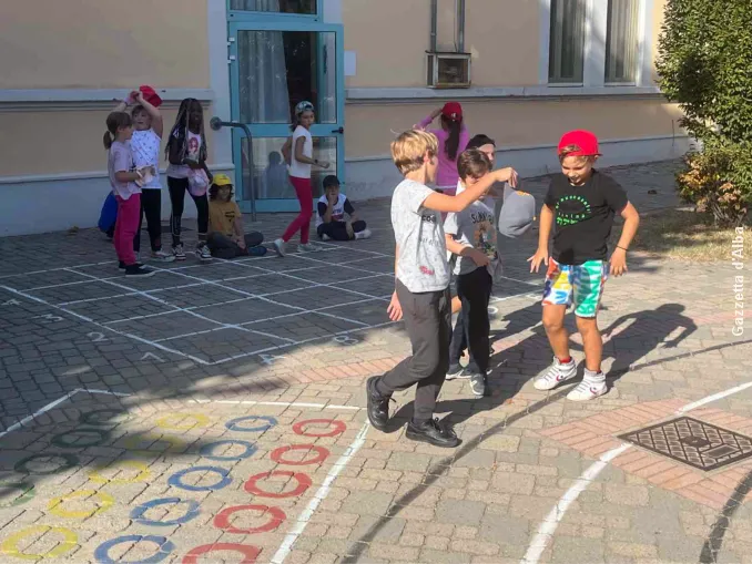 Un cortile tutto decorato dall’artista Giovanni Botta per la primaria Mosca di Bra