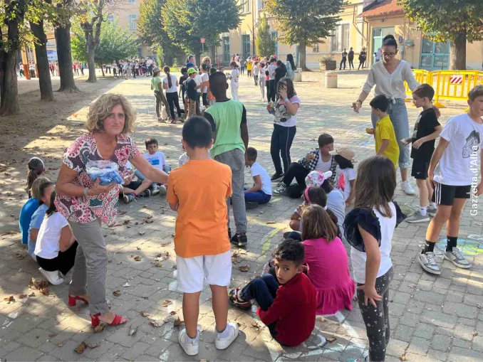 «Grazie ai genitori, alle insegnanti e a voi ragazzi – a esordito la dirigente scolastica Camagna – per aver reso davvero bello questo cortile, luogo di gioco e di incontro. E grazie agli sponsor per la merenda: Biraghi che ci ha dato il formaggio e i nostri cuochi della mensa, capitanati da Antonio Petti, che ha preparato della deliziosa focaccia».