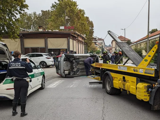 BRA Verso mezzogiorno di oggi, lunedì 23 ottobre, in piazza Giolitti a Bra una settantenne braidese alla guida di una Fiat Panda, per cause ancora in fase di accertamento, è andata ad urtare un’auto in sosta per poi ribaltarsi sulla sede stradale.