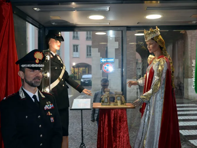 ASTI Nella mattinata di giovedì 2 novembre, alla presenza delle autorità provinciali e cittadine, in piazza San Secondo, il comandante provinciale dei Carabinieri di Asti, colonnello Paolo Lando, ha inaugurato una vetrina contenente l’allestimento scenografico dell’allegoria Asti affida la città all’Arma.