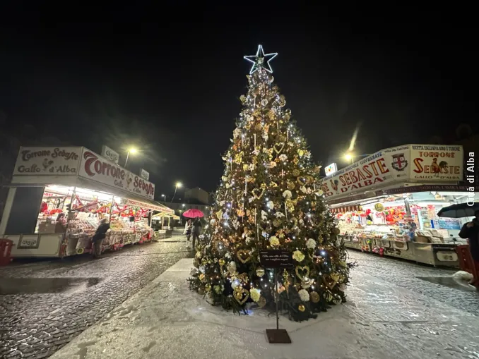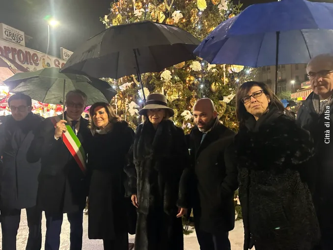 La delegazione si è poi spostata in piazza Michele Ferrero per la tradizionale accensione dell’albero di Natale dono della famiglia Ferrero. Anche quest’anno il grande albero illumina una delle piazze principali di Alba, accompagnando i giorni delle festività insieme a quello acceso in piazza Risorgimento per le Notti della natività.