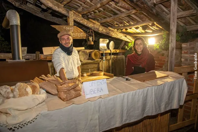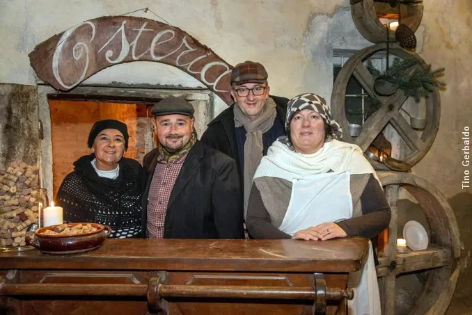 La via centrale del paese si è animata grazie a molti figuranti, dalla maestra e gli studenti con la scuola, le massaie che preparano la posta, il falegname e il fabbro, la donna che cuoce la polenta e quella che prepara da mangiare. E poi la natività e un presepio con gli edifici della via riprodotti in scala.