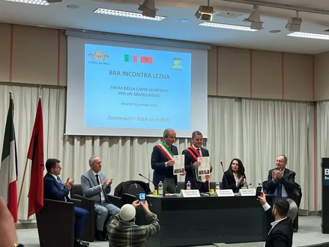 Nella serata di ieri sera, presso l’Auditorium della BPER, alle 21, cerimonia aperta al pubblico con la firma dell’intento di gemellare le due città. La serata è stata molto dinamica presentata da due giovani, Samuel e Giulia, che hanno presentato gli ospiti che sono intervenuti: il Sindaco Gianni Fogliato, il Sindaco di Lezha, il Vice Sindaco Biagio Conterno e il delegato ai gemellaggi del Comune Lino Ferrero.