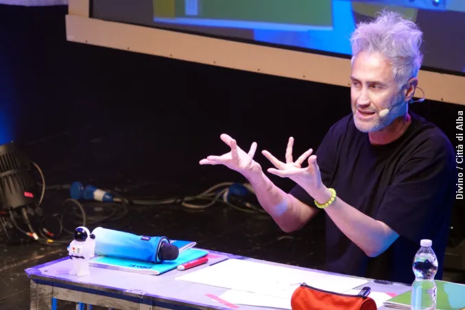 Dopo gli ospiti degli scorsi anni, Fabio Geda e Roberto Vecchioni, protagonista sul palco del teatro Sociale è stato il professor Vincenzo Schettini, diventato virale negli ultimi anni sui social per le sue lezioni “La fisica che ci piace”. L’istrionico docente, anche musicista, con ironia e semplicità ha spiegato ai ragazzi, chiamandoli sul palco e coinvolgendoli negli esperimenti, concetti come forze ed equilibrio, moti e dinamica, meccanica quantistica, relatività. Tra un tema scientifico e l’altro, ha esortato i giovani a vivere a pieno le loro vite, tenendo sempre a mente la lezione più importante: «Fate cose nella vostra vita, non perdete mai di vista l’energia che vi circonda, siate determinati ed esprimete ogni giorno il potere più grande che la vita e la scienza ci offrono, il potere dell’amore».