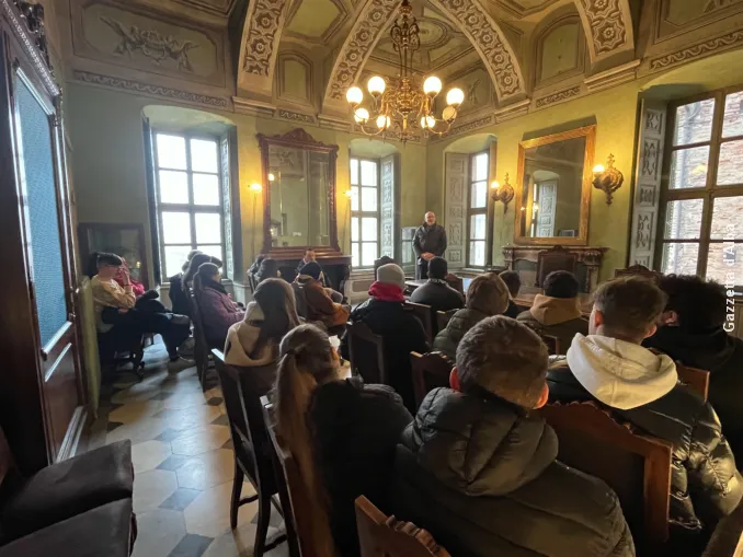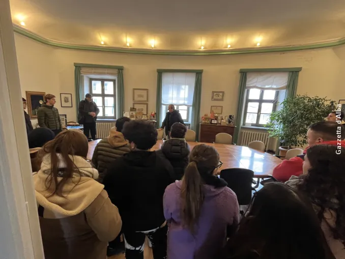 BRA Una ventina di studenti di una classe V dell’istituto tecnico commerciale Ernesto Guala hanno visitato questa mattina (giovedì 18 gennaio) il Municipio di Bra. Accompagnati dal docente di diritto, professor Andrea Sacco, sono stati guidati nelle sale storiche del palazzo dal dottor Costanzo Fissore, già dirigente e vicesegretario comunale, da pochi mesi in pensione.