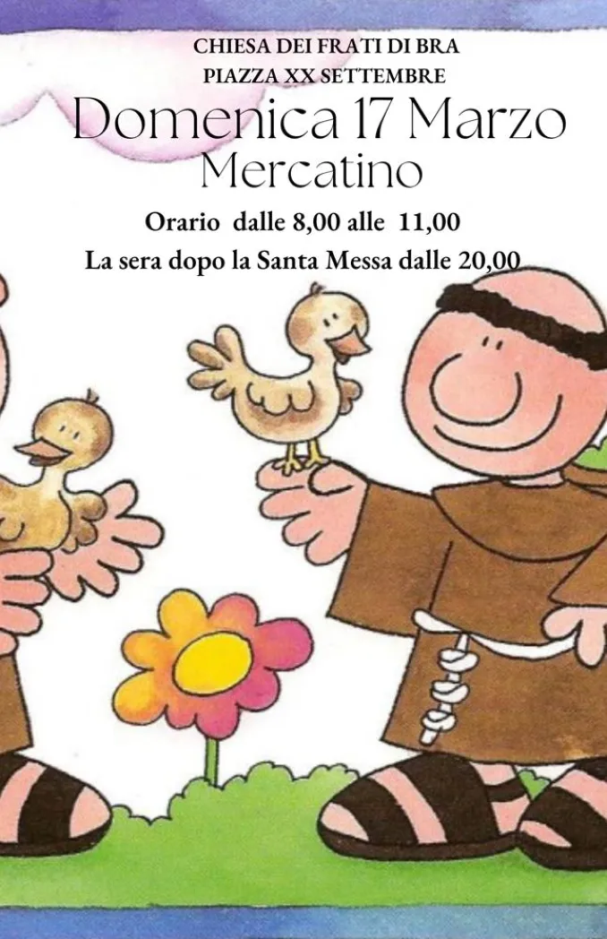 BRA Torna domenica 17 marzo, dalle 8 alle 11 e dopo la Messa delle 20, il mercatino a sostegno delle attività dei Cappuccini di Bra. Un gruppo di volontari, che già aveva ideato un mercatino nelle domeniche prima di Natale, ha riproposto questa iniziativa che tanto aveva avuto successo.