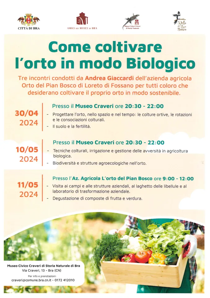 Il primo appuntamento è per martedì 30 aprile dalle 20.30 alle 22 al Craveri. La serata sarà dedicata a progettare un orto nello spazio e nel tempo: le colture ortive, le rotazioni e le consociazioni colturali.