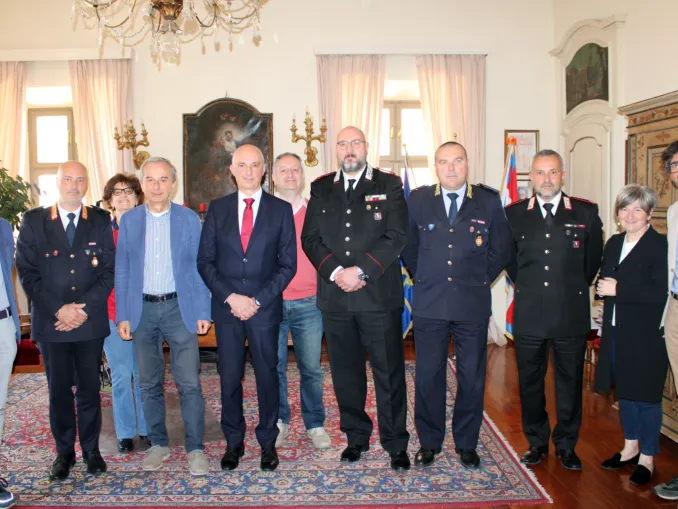 A ricevere la delegazione, oltre al primo cittadino Gianni Fogliato insieme a tutti gli assessori – che hanno ringraziato il luogotenente Cocuzza per il suo generoso servizio – anche il comandante della Polizia locale Davide Detioma e il suo vice Sergio Mussetto.
