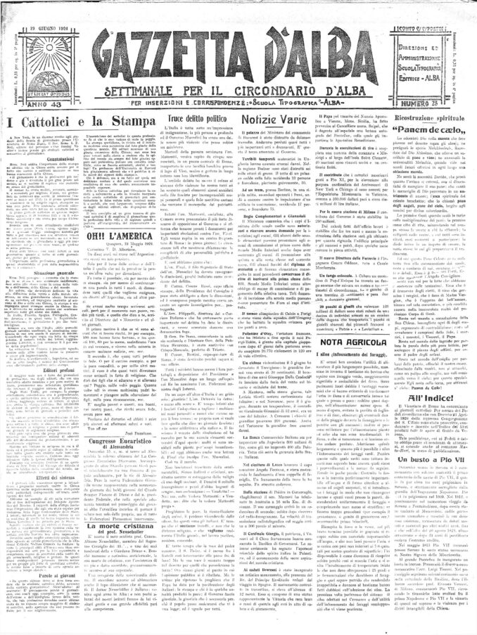 Il settimanale diocesano è da alcuni anni affidato alla Compagnia di San Paolo guidata dal beato Giacomo Alberione e raggiunge tutti i paesi della zona grazie alla diffusione capillare delle parrocchie e dei circoli collegati, oltre a diverse località sparse tra il Piemonte e la vicina Liguria.
