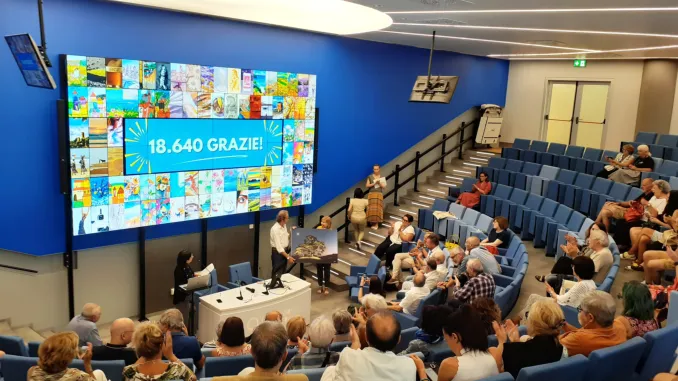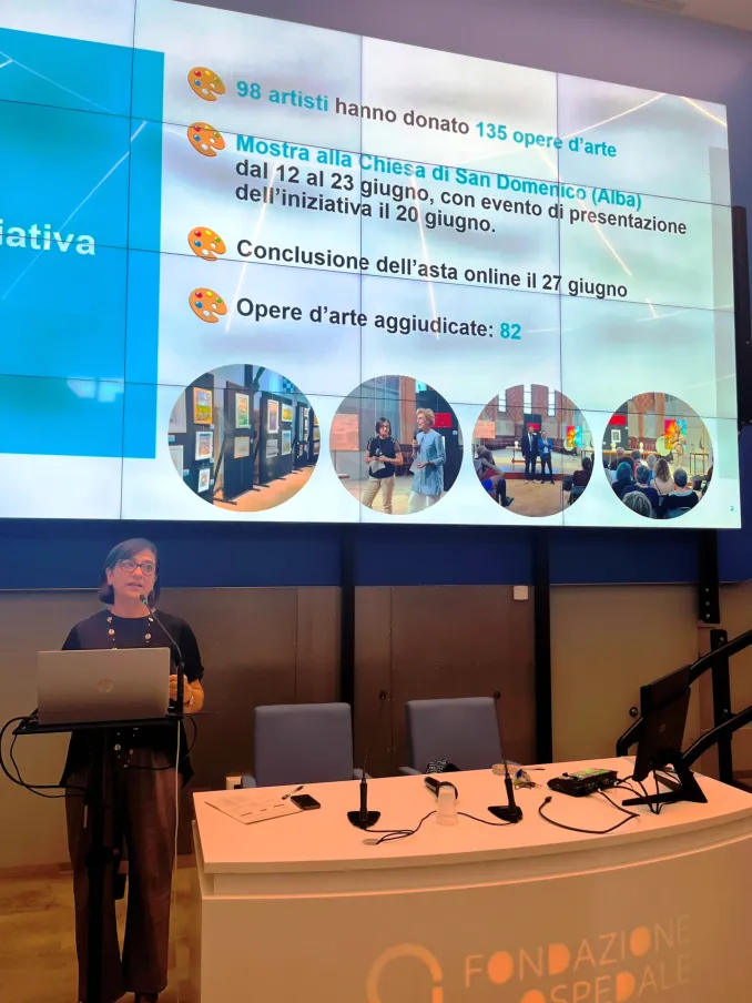 Venerdì 12 luglio, presso l’auditorium dell’ospedale di Verduno, si è svolta una serata dedicata alla consegna delle opere, esposte presso la chiesa di San Domenico e aggiudicate grazie a un’asta benefica online. L’iniziativa ha permesso di raccogliere 18.640 euro, che saranno destinati totalmente alle attività di ricerca clinica aziendale e di formazione del personale.