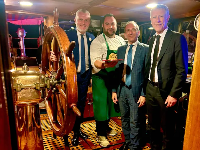 Ospite speciale, lo chef Alessandro Mecca del ristorante Al castello di Grinzane Cavour che ha preparato, per la cena di gala organizzata sulla banchina del Jeddah yacht club&marina, il suo risotto tipico piemontese impreziosito dall’ultimo tartufo bianco d’Alba della stagione di raccolta che si chiude il 31 gennaio.