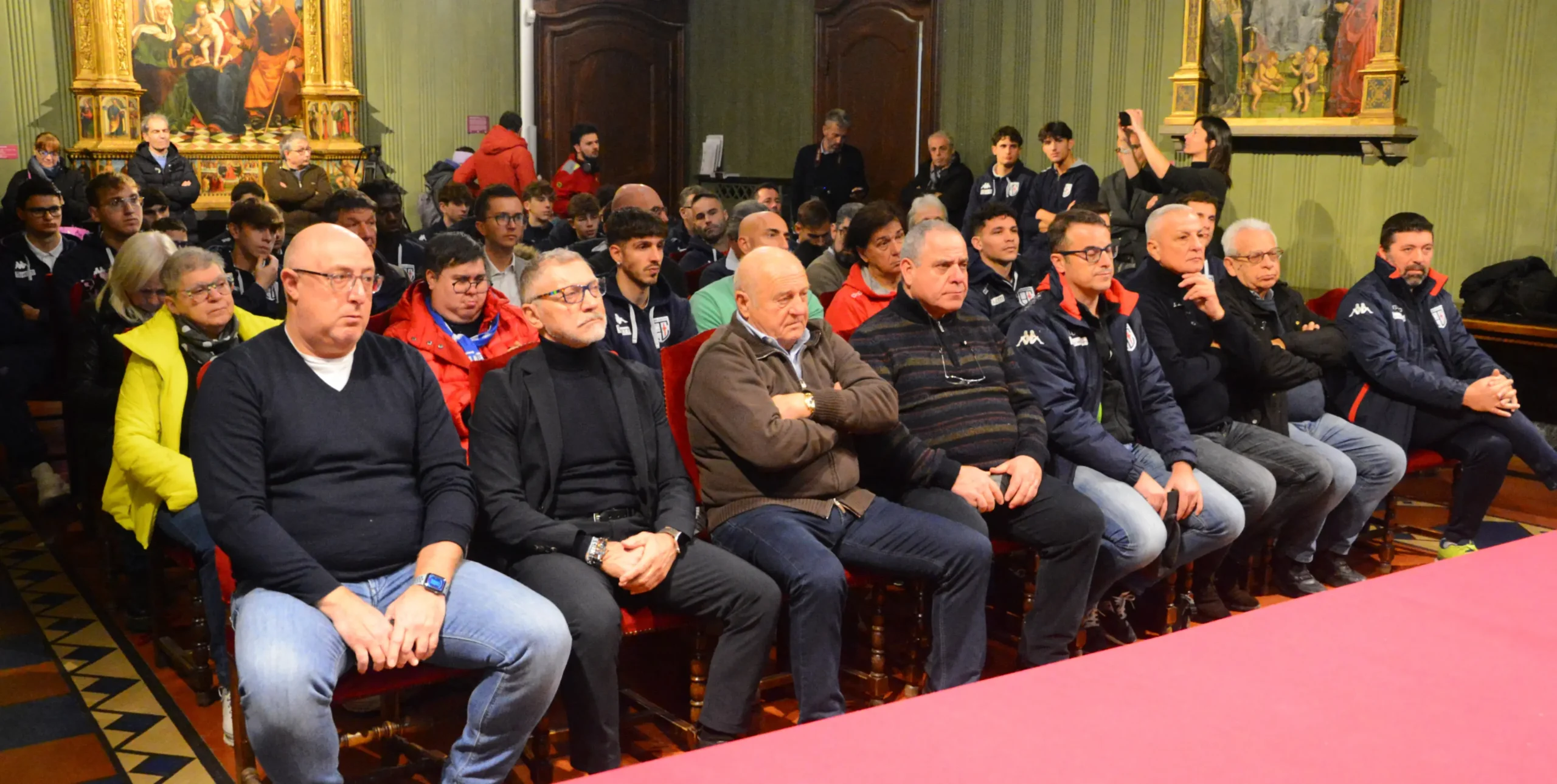 ALBA Questa mattina, sabato 1° febbraio, l’Alba calcio è stata ricevuta in Municipio per festeggiare la vittoria nella Coppa Italia di Eccellenza piemontese. Ad accogliere i giocatori c’erano il sindaco Alberto Gatto e l’assessore allo sport Davide Tibaldi in sala Teodoro Bubbio. Per la società erano presenti il presidente Giovanni De Bellis, il direttore generale Giovanni Barbero e il tecnico Salvatore Telesca, uomo record della competizione con quattro titoli.
