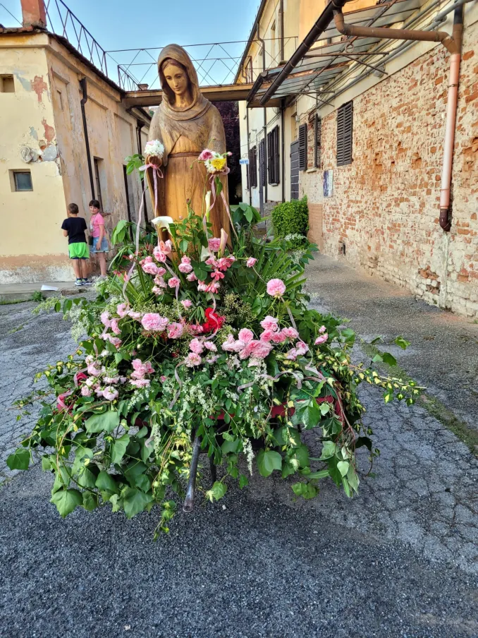 Venerdì 30 maggio, anche nella frazione rurale di Ca’ del Bosco si è concluso il mese mariano con un momento semplice ma carico di significato, nonostante l’assenza di sacerdoti. Alcuni laici della comunità hanno organizzato e guidato una piccola processione, che dal pilone della Pace — dove per quasi tutte le sere di maggio si è recitato il Rosario — ha condotto i partecipanti fino al sagrato della chiesa dedicata alla Vergine Assunta.