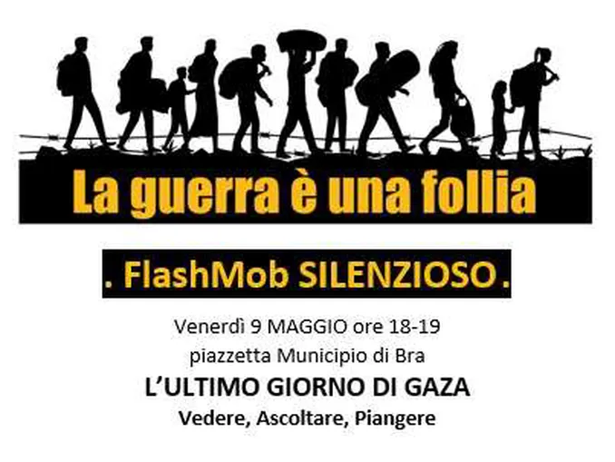 BRA Stasera (venerdì 9 maggio) dalle 18 alle 19, ai piedi della statua del Cottolengo, si svolgerà un flash mob silenzioso sotto lo striscione La guerra è una follia, in adesione alla campagna nazionale L’ultimo giorno di Gaza.