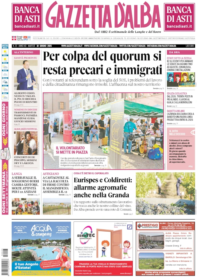 ALBA Gazzetta d’Alba arriva in edicola e in formato digitale con un nuovo numero martedì 10 giugno