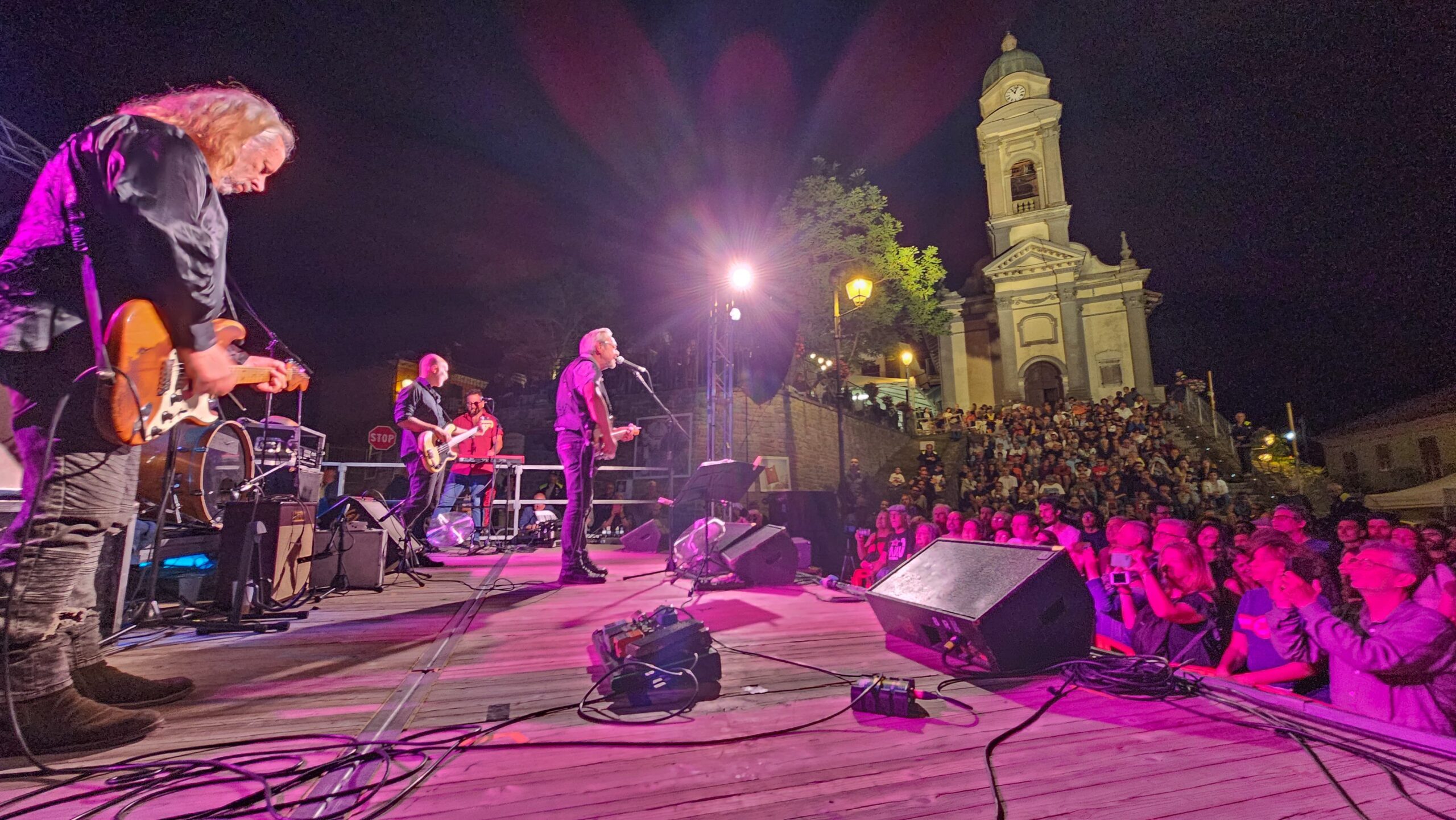 La sera, la piazza di Roddino si è trasformata in un’opera in tre atti, con tre concerti dal respiro diverso ma perfettamente allineati nello spirito.