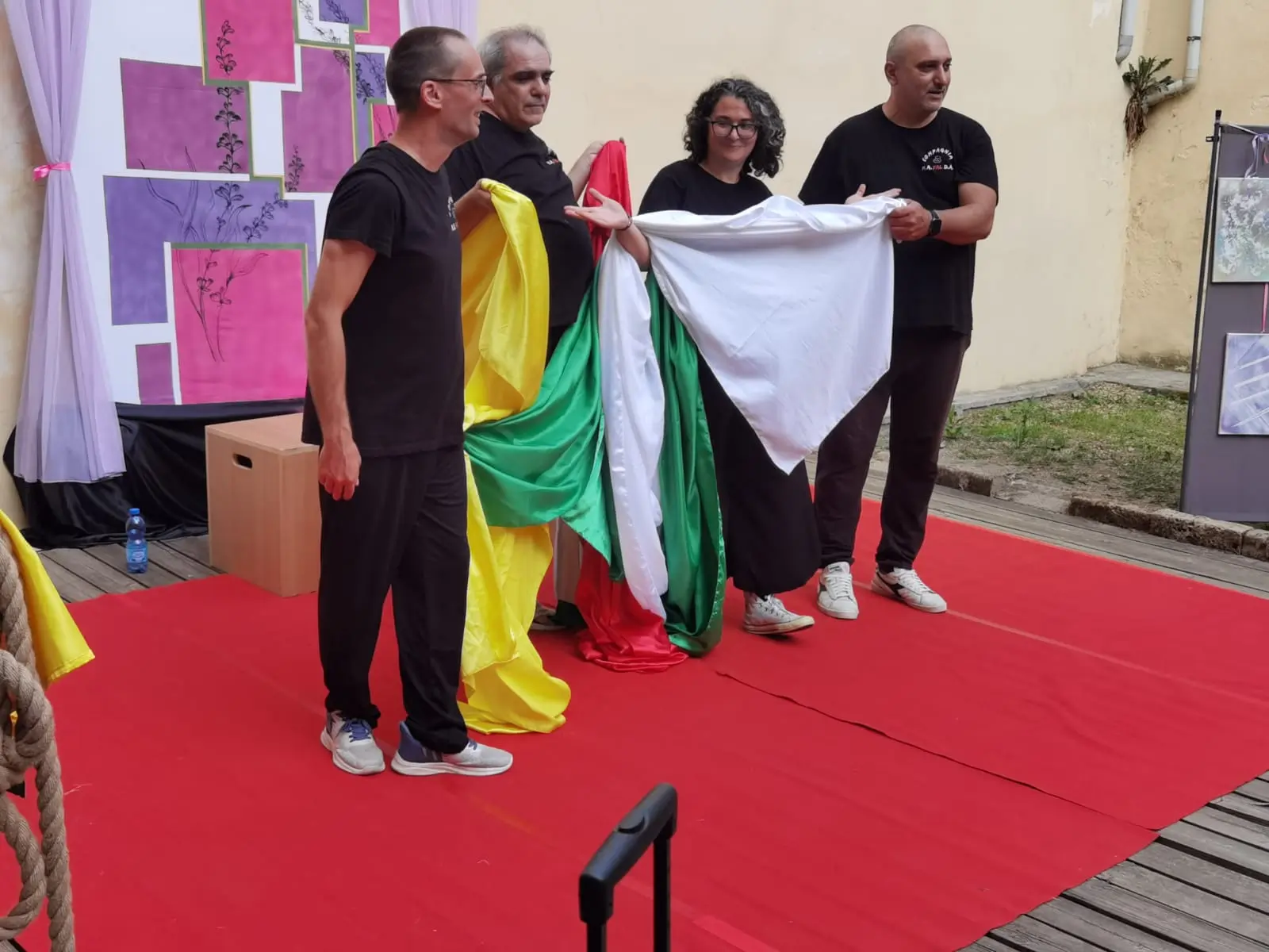Gli artisti, Mauro Mazza, Andrea Gaglioti, Marcello Zanetta della Compagnia Mafalda si sono uniti sul palco con Sara Bondioli e il giovane musicista Diego Malerba entrambi della Compagnia Incontri.