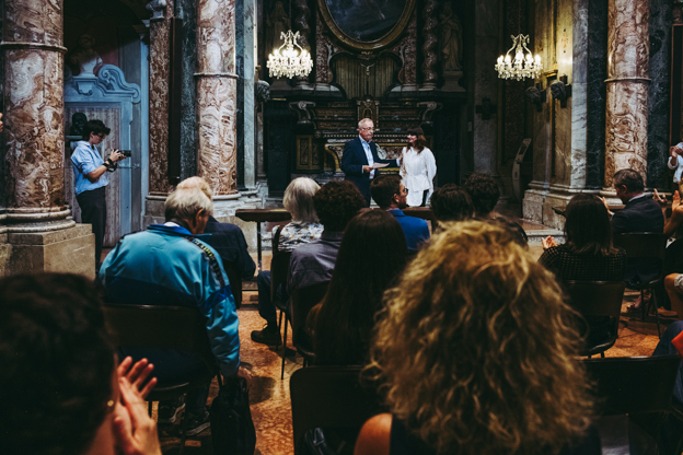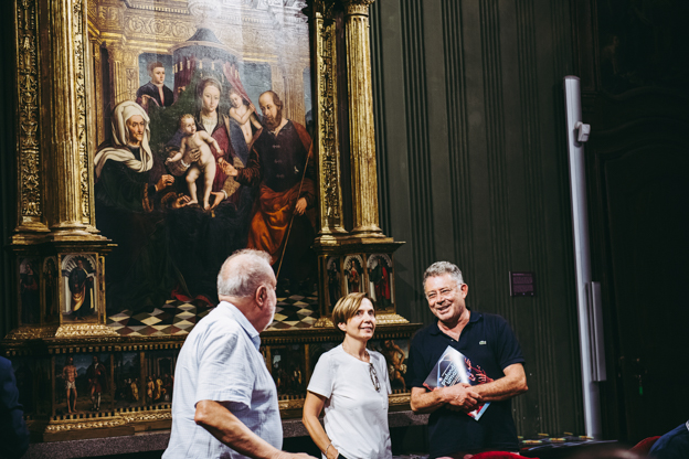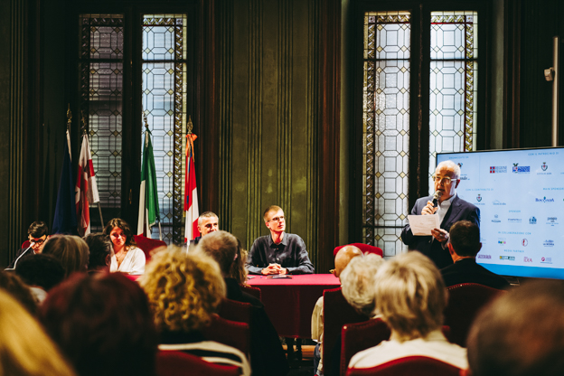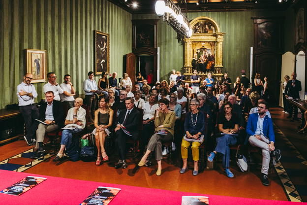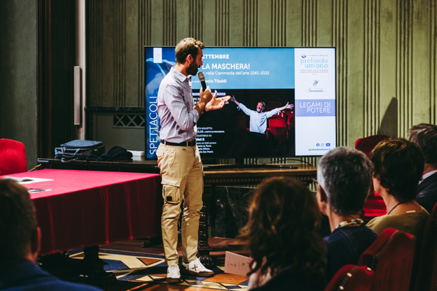 A seguire, l’attore Paolo Tibaldi ha presentato lo spettacolo Su la maschera, in programma il 26 settembre, spiegando con ironia: «Sembra un paradosso, ma si mette su la maschera per essere ciò che si è».